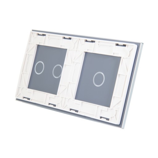 Włącznik dotykowy potrójny, montowany do dwóch puszek, w kolorze BIAŁYM.