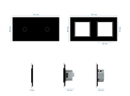 - Wymiary: 151 mm / 80 mm / 33 mm