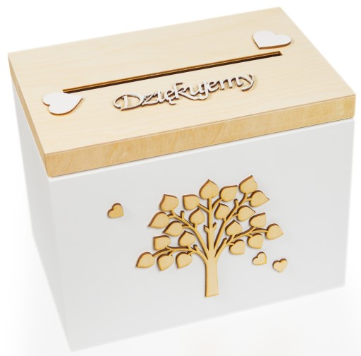 Nasza skrzynia na koperty idealnie komponuje się z dostępną również na innych naszych aukcjach księgą gości.