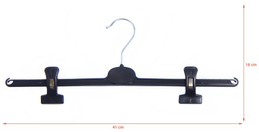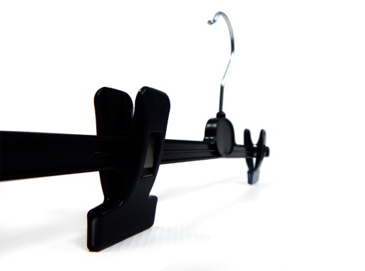 Wieszaki odzieżowe plastikowe czarne KLAMROWE - 25 sztuk