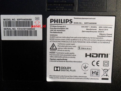 Proszę podać dokładny model TV, oraz trzycyfrowy panel_id ( patrz zdjęcie ) !!