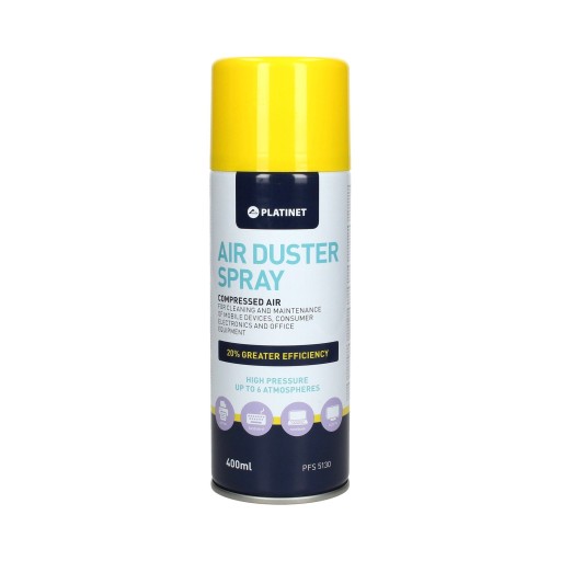 Bardzo praktyczne urządzenie do czyszczenia bez chemii w trudno dostępnych miejscach. Sprężony gaz, wydmuchiwany przez rurkę z dużą prędkością, usuwa kurz oraz inne zanieczyszczenia. Produkt ma duże zastosowanie przy czyszczeniu kamer, komputerów, klawiatur, drukarek, CD-ROM, nagrywarek, skanerów oraz w elektronice precyzyjnej. Pojemność 400 ml.