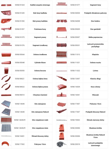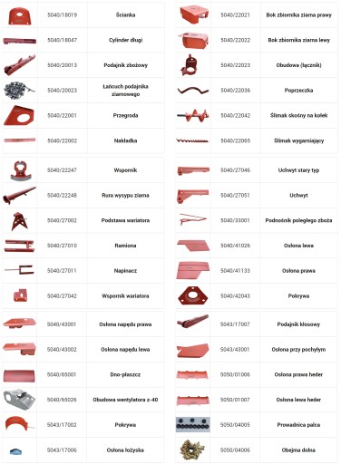Produkujemy również części zamienne (oblachowanie) do kombajnów zbożowych produkcji polskiej i zagranicznej. Systematycznie poszerzany asortyment produktów to ponad 200 pozycji, dzięki czemu nasza oferta skierowana jest do szerokiej grupy odbiorców.