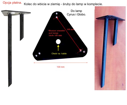 - w komplecie oprawka na żarówkę duży gwint E27.( bez żarówki ) - można podpiąć własny kabel pod tą oprawkę wprowadzając go od dołu po przez słupek do samej góry słupka