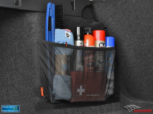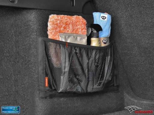 To wytrzymała siatka Nano-NetX obszyta od dołu i po bokach taśmą typu rzep. Od góry wykończona gumą, która chroni akcesoria przed przemieszczaniem. Zastosowany materiał Mesh-Technology zabezpiecza przed wypadnięciem nawet niewielkie przedmioty. Kieszeń mocuje się do wykładziny w bagażniku lub kabinie auta.