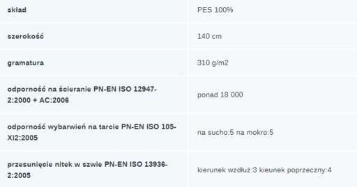 Prezentowane parametry techniczne tkaniny zostały uzyskane