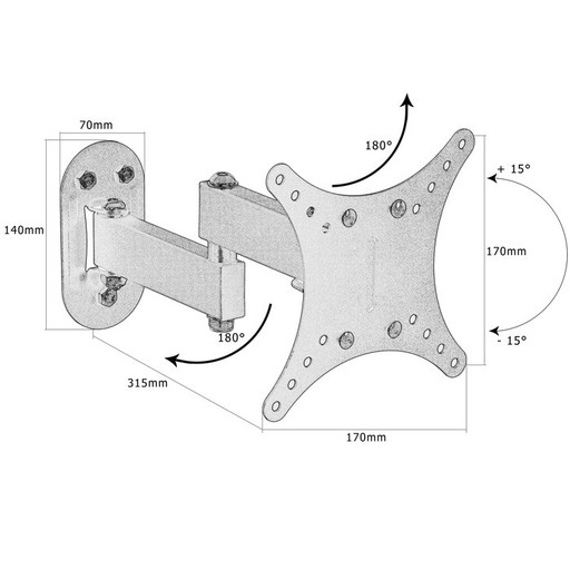 Przystosowany do rozstawów śrub w tv według normy VESA: 75x75, 100x100, 125x125, 150x150
