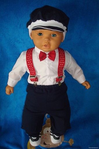 - koszulę typu body+spodnie+muszka+kaszkiecik+szelki