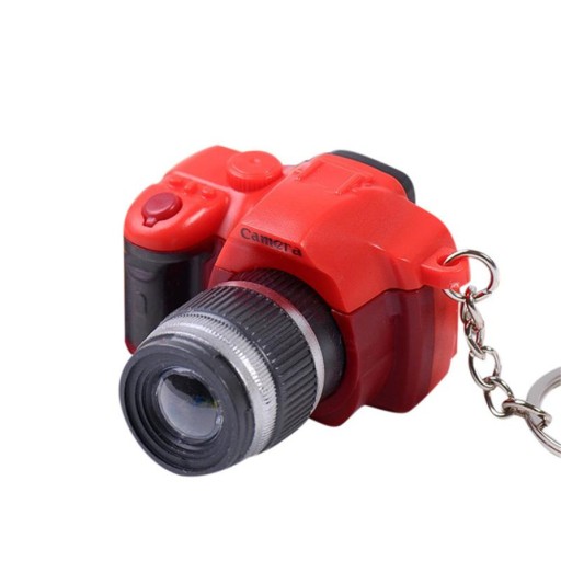 Brelok w kształcie aparatu - po naciśnięciu spustu aparat wydaje dźwięk migawki oraz obiekty świeci się.