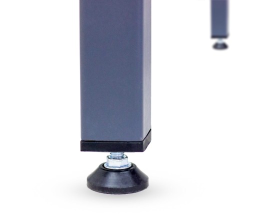 Stół posiada gumowe stopki, które zapobiegają jego przesuwaniu się, amortyzują drgania oraz umożliwiają regulację wysokości.