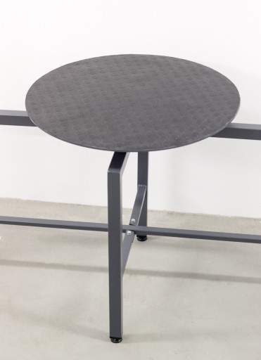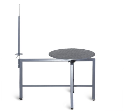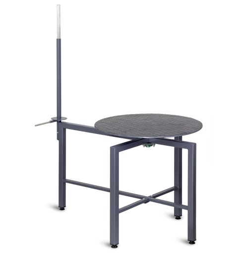 Blat wykonany z blachy o grubości 4 mm przymocowany jest do specjalnego stelażu, dzięki czemu obraca się bardzo lekko i równomiernie. Ten model stołu wyposażony jest również w antypoślizgową gumę, która zapewni, że Twoje paczka nie będzie się ślizgała na blacie. Szczególnie polecamy to rozwiązanie dla mniejszych lub lżejszych paczek.