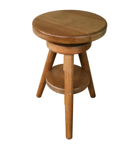 Taboret obrotowy regulowany w kolorze dębowym rustykalnym.