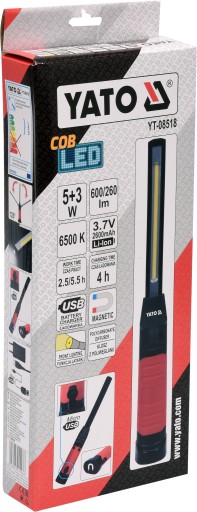 YATO LAMPA WARSZTATOWA AKUMULATOROWA LATARKA LED COB 5W +3W 600lm 6500K