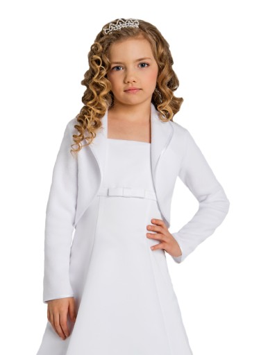 Mamy do zaoferowania Państwu nowe bolerko komunijne z długim rękawem, ze stójką. Wykonane jest bardzo starannie z polaru, obszyte lamówką.
