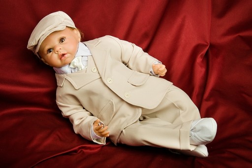 Muszka wiązana pod szyjką na tasiemkę. Całość uszyta z niezwykłą dbałością o szczegóły aby Państwa malec prezentował się niezwykle elegancko w tym ważnym dniu.