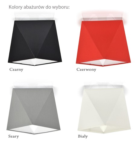 - Kolory abażuru: Biały, Czarny, Szary, Czerwony