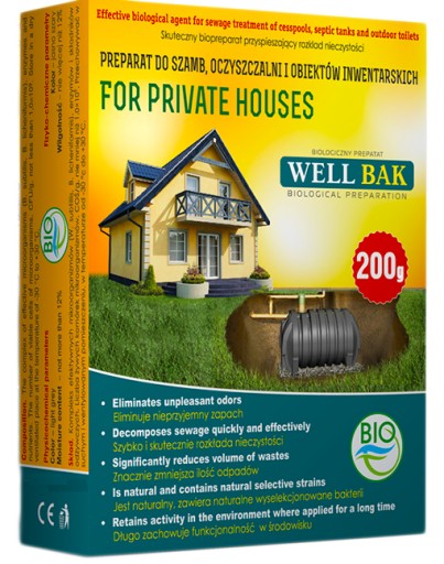 Pod wpływem złożonego kompleksu mikroorganizmów i enzymów odbywa się przyspieszona naturalna neutralizacja zanieczyszczeń w ściekach,szambach, zbiornikach gnojowicy. Po wprowadzeniu do toalety, szamba lub zbiornika z gnojowicą biopreparat Well Bak przetwarza nieczystości na wodę, dwutlenek węgla i lekki osad.