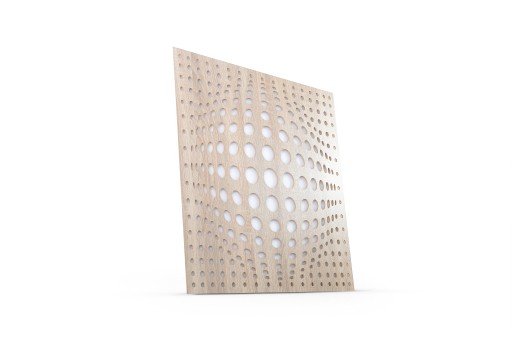 Panel uniwersalny FoamPRO, wymiar 60 x 60 x 5 cm – ustrój piankowy z unikalnym, drewnianym wykończeniem. Łatwy w montażu za pomocą kleju, posiada uniwersalne, szerokopasmowe pasmo pochłaniania i unikalny design.