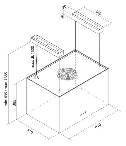 - Wysokość okapu: min 63,50 cm - max 188,50 cm