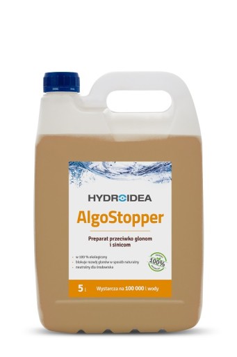 AlgoStopper to w 100% naturalny preparat przeznaczony do każdego rodzaju zbiornika wodnego. Zawiera związki humusowe, skondensowane ekstrakt ze słomy jęczmiennej oraz inne naturalne składniki, których aktywne działanie powstrzymuje masowy rozwój glonów zawiesinowych, glonów nitkowatych i sinic. Przeciwdziała efektowi tzw. zazielenienia wody. W pełni bezpieczny dla człowieka, środowiska i życia biologicznego. Produkowany jest z ekologicznie uprawianych roślin i zbóż, bez użycia nawozów, herbicydów i pestycydów. Preparat można stosować nawet w najbardziej wrażliwym środowisku wodnym.