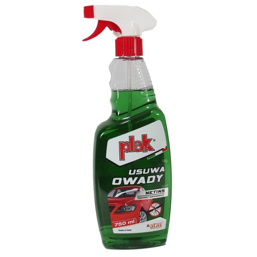 Preparat do usuwania pozostałości po owadach z szyb, reflektorów, elementów ozdobnych oraz karoserii samochodu. Nie pozostawia zacieków. Bezpieczny dla lakieru, uszczelek oraz innych elementów gumowych.