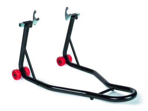 Stojak posiada regulowane adaptery. Wysokość tego modelu to 46 cm, a długość 80 cm. Doskonale sprawdzi się w niewielkich pomieszczeniach, w których liczy się każdy kawałek przestrzeni. Wyposażony jest w podwójne, dodatkowo wzmocnione koła. To doskonały sposób na przechowanie motocyklu lub prace serwisowe! Zestaw obejmuje dwie sztuki.