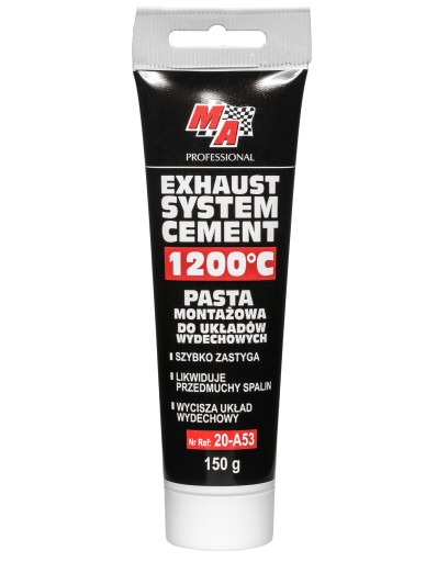 Wysokotemperaturowa pasta montażowa do układów wydechowych. Uszczelnia połączenia poszczególnych elementów układu wydechowego i wycisza cały układ. Zabezpiecza przed powstawaniem korozji, ułatwia późniejszy demontaż układu.