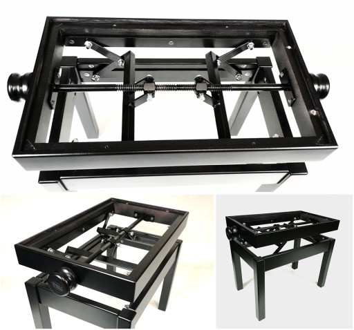 - Pierwszą największą zmianą jest nowy mechanizm montowany we wszystkich modelach ław; Sonata, Sonata Plus, Etiuda, Etiuda Plus, Menuet, Menuet Plus, Beethoven, Beethoven Plus, SX, EX, MX, BX. - W nowym ulepszonym mechanizmie zastosowaliśmy grubszą śrubę z trapezowym gwintem o większym skoku, dzięki czemu siedzisko szybciej podnosi i opuszcza się podczas regulacji.