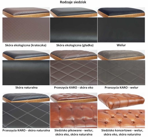 Dostępne materiały obiciowe siedziska: