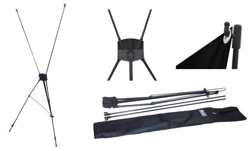 Pajączek składa się ze stelaża z metalowych rurek i włókna węglowego. Jest to bardzo lekka i prosta konstrukcja, umożliwiająca łatwe i szybkie składanie i rozkładanie.Nadruk jest wykonany na materiale blockout który w porównaniu do baneru (frontlit) nie przepuszcza światła, jest lżejszy oraz cechuje go dużo wyższa jakość nadruku.