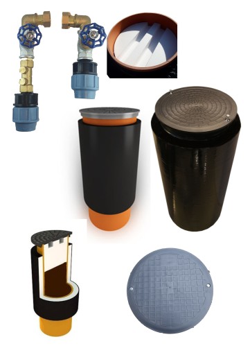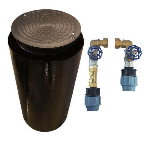 Studzienka wodomierzowa fi 400 mm i wysokość 1500 mm ocieplona z pokrywą z PP o klasie nacisku A15 (1.5 tony) z zestawem przyłączeniowym do wodomierza.