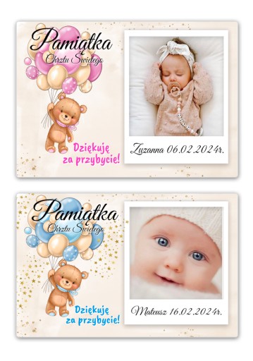 Podziękowania na chrzest : chłopca lub dziewczynki, baby shower, pamiątka dla gości