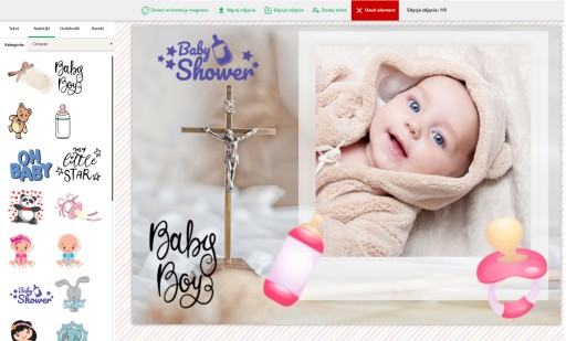 4. Przejdź do kreatora i wykonaj swoje projekty niezbędne do realizacji zamówienia. Dodaj zdjęcie, tekst oraz ozodobniki