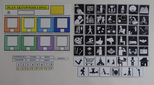 Plan aktywności dnia to pomoc wychowawcza i dydaktyczna w szczególności przeznaczona dla terapeutów / rodziców dzieci z autyzmem.