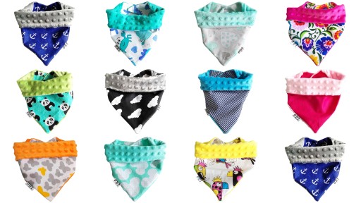 Apaszki są dwustronne, jedna strona to bawełna 100% w wielu wzorach, druga strona to milutki i cieplutki MINKY.