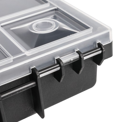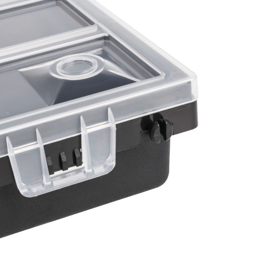 Uniwersalny organizer z serii NORS o regulowanych przegródkach, których wielkość i ilość można łatwo dostosować do swoich aktualnych potrzeb. Dzięki transparentnej pokrywie zawartość organizera jest zawsze doskonale widoczna i łatwo dostępna, a mocna rączka pozwala bez trudu przenieść organizer w inne miejsce.