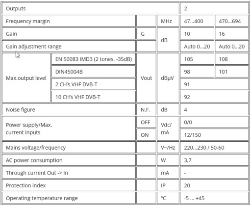 2-wyjściowy wzmacniacz domowy z automatyczną regulacją poziomu do rozszerzenia domowej sieci TV naziemnej.
