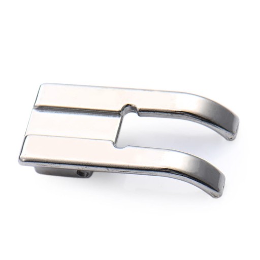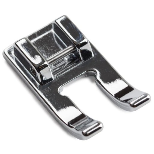 Stopka otwarta do naszywania aplikacji przeznaczona przede wszystkim do ozdabiania za pomocą ściegów dekoracyjnych, umożliwia także łatwe obszywanie dziurek do guzików. Dzięki szerokiemu rozstawowi płóz i rowkowi na spodzie, stopka daje możliwość łatwego prowadzenia naszywanych aplikacji.
