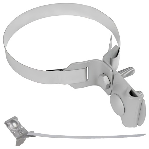 Bardzo solidna obejma do rynny wykonana ze stali ocynkowanej ogniowo (uchwyt) oraz paska ze stali nierdzewnej. Wygodna regulacja średnicy zapewnia niezawodne mocowanie uchwytu i drutu odgromowego do rynien o maksymalnej średnicy 120mm.