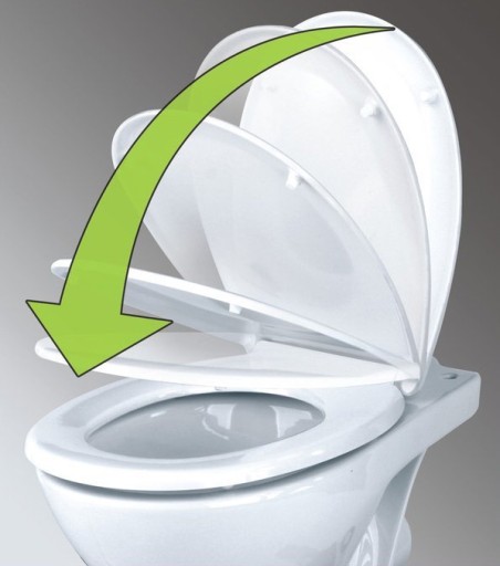 Wolnoopadająca deska Super Slim o designerskim, nowoczesnym wyglądzie posiada trwałe zawiasy z możliwością wygodnego wypinania za pomocą jednego przycisku.