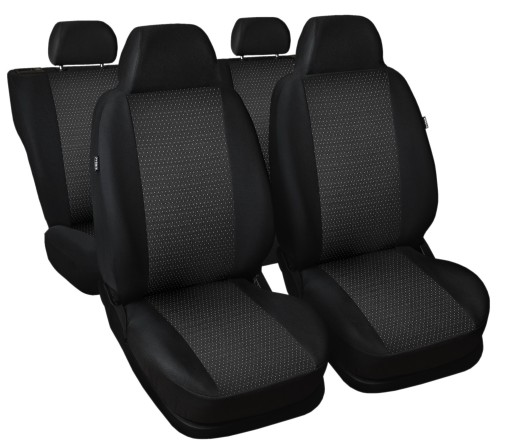 Pokrowce PRACTIC wykonane są z optymalnej jakości materiałów tapicerskich w części bocznej pokrowca w kolorze czarnym, oraz materiału żakardowego w części środkowej, o wzorze podobnym do oryginalnych tapicerek foteli.