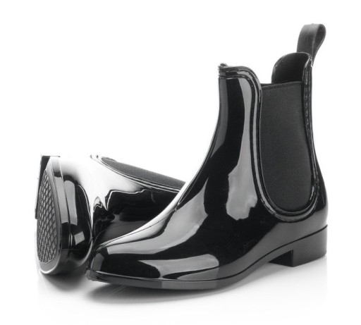 Błyszczące, krótkie kalosze idealne na deszczową aurę.