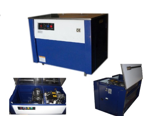 Urządzenie samo wysuwa taśmę na żądaną przez operatora długość, operator opasa taśmą karton wsuwając koniec taśmy do otworu ściągającego. Maszyna automatycznie opina karton, naciąga, obcina taśmę i jednocześnie ją zgrzewa. Cała operacja trwa klika sekund.