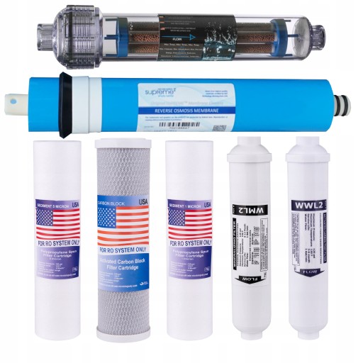 Komplet wkładów do filtra RO7 z JONIZATOREM + membrana osmotyczna SUPREME 75GPD