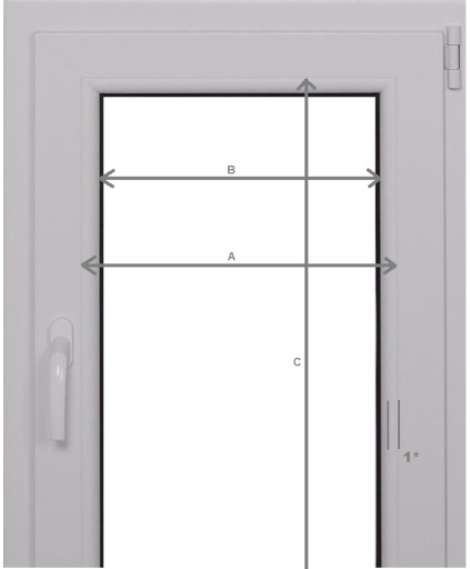 - A - szerokość A (wymiar A zgodnie z instrukcją pomiaru czyli szerokość szyby z listwami przy-szybowymi)