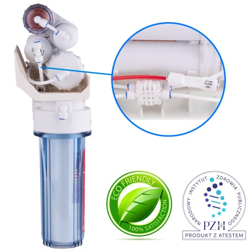 Wszystkie filtry osmotyczne sprzedawane przez Naszą firmę posiadają ograniczniki przepływu, zawór zwrotny i zawór czterodrożny. Są w pełni automatyczne i mają aktualny atest PZH.
