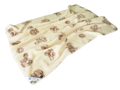 Ciepły i lekki koc wełniany merynos australijski wzór "misie"