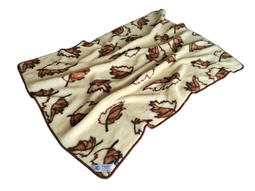 Ciepły i lekki koc wełniany merynos australijski wzór "jesień"
