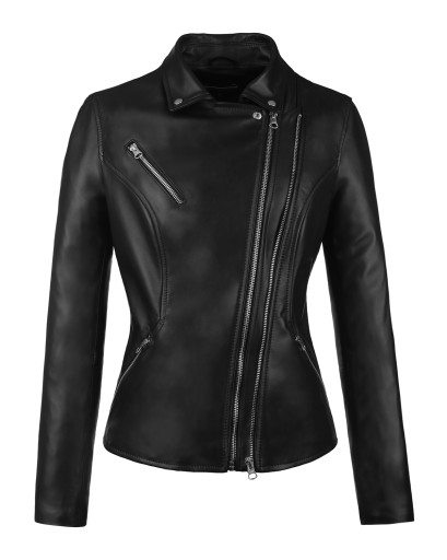 Ramoneska damska Dorota w czarnym kolorze, została uszyta z wytrzymałej jagnięcej skóry. Nieocieplana, zapinana na asymetryczny suwak. Posiada trzy kieszenie zapinane na zamek.