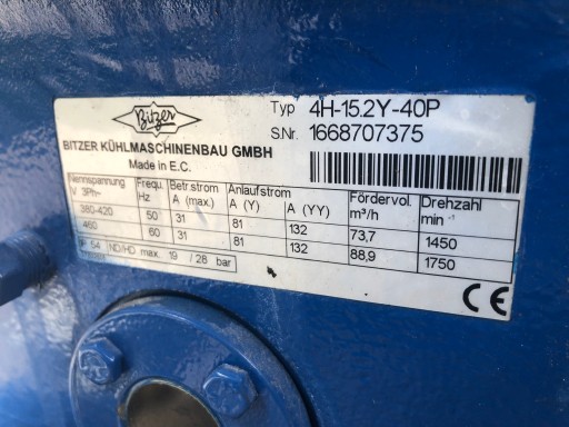 SPRĘŻARKA AGREGAT BITZER 4H-15.2Y-40P wyd 73,7m3/h